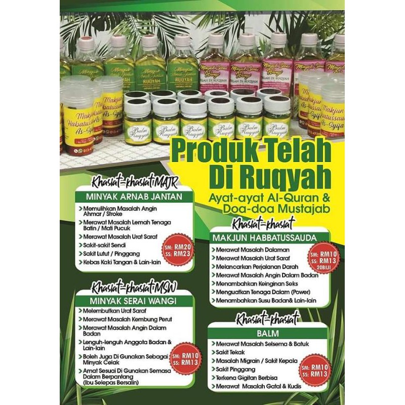 Dalam usaha merawat masalah lumpuh, bell's palsy, lemah tenaga batin / mati pucuk, sukar mendapat zuriat dll.